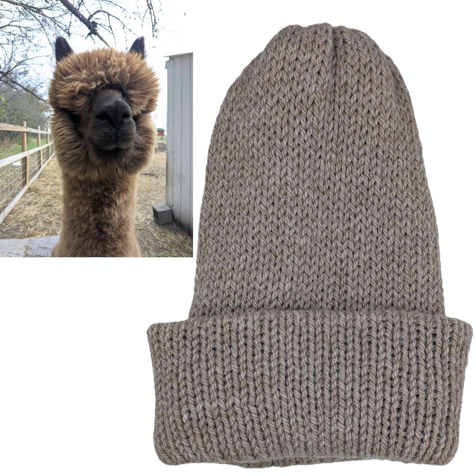 Made from 100% Grown in the US alpaca fiber, these double knit hats will keep you warm on the coldest day (even in North Dakota). Wear the hat with the brim folded up for extra warmth over your ears or fold it back down to wear it slouch.